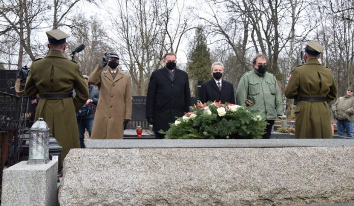 Minister Kasprzyk wraz z przedstawicielami Instytutu Historycznego nn im. Andrzeja Ostoja Owsianego: Krzysztofem Lancmanem i Andrzejem Anuszem złożyli kwiaty na grobie Marszałka Edwarda Śmigłego-Rydza na warszawskim Cmentarzu Powązkowskim.