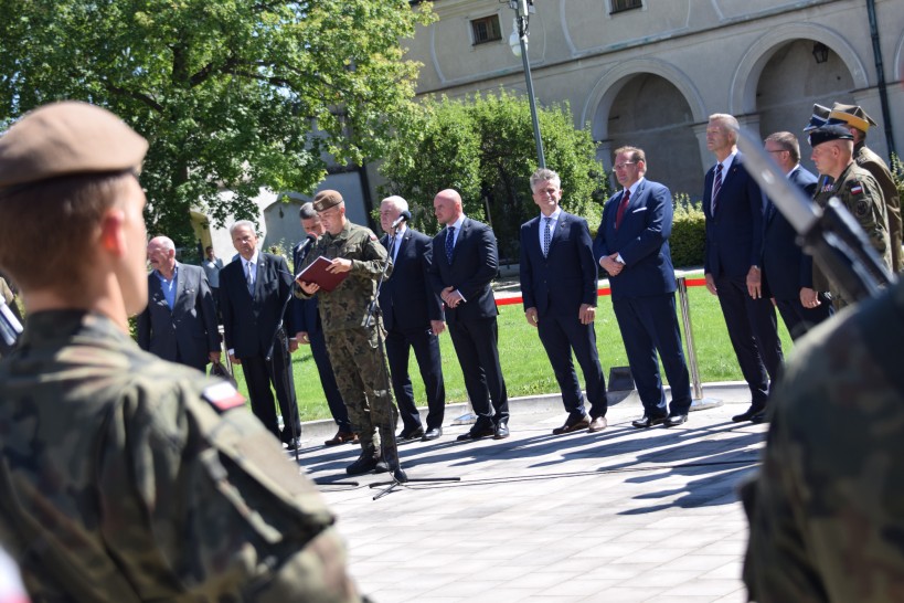 Podczas uroczystości na pl. Wolności głos zabrał minister Jan Kasprzyk podkreślając, że 106 lat temu Kielce były miejscem, gdzie rodziła się niepodległa Polska. To była pierwsza stolica odradzającej się Rzeczpospolitej. Tu weszli żołnierze I Kompanii Kadrowej niosąc na swoich sztandarach hasła wolności i suwerenności! Tutaj zaczynał się niezwykle ważny etap dla dziejów narodu jakim była walka o odzyskanie niepodległości. Od sierpnia 1914 roku oddziały młodych patriotów walczyły o to, by przywrócić Polskę na mapę świata, dać jej należne miejsce w gronie państw niezależnych i suwerennych. Kilka lat później, Ci sami ludzie obronili Polskę przed najazdem bolszewickiej Rosji.