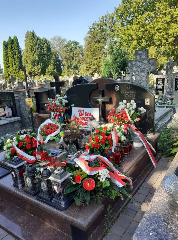 Na tym samym cmentarzu jest pochowany ksiądz Sylwester Zych, kapelana Konfederacji Polski Niepodległej, tragicznie zmarłego w 1989 r. Na jego grobie również złożono kwiaty.